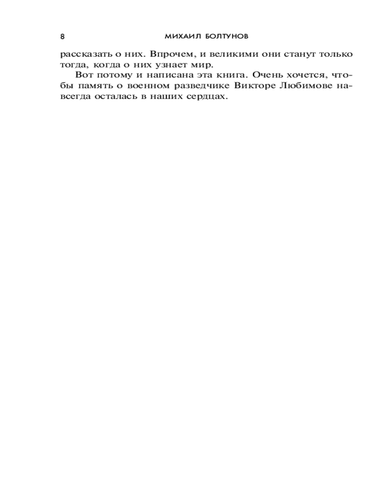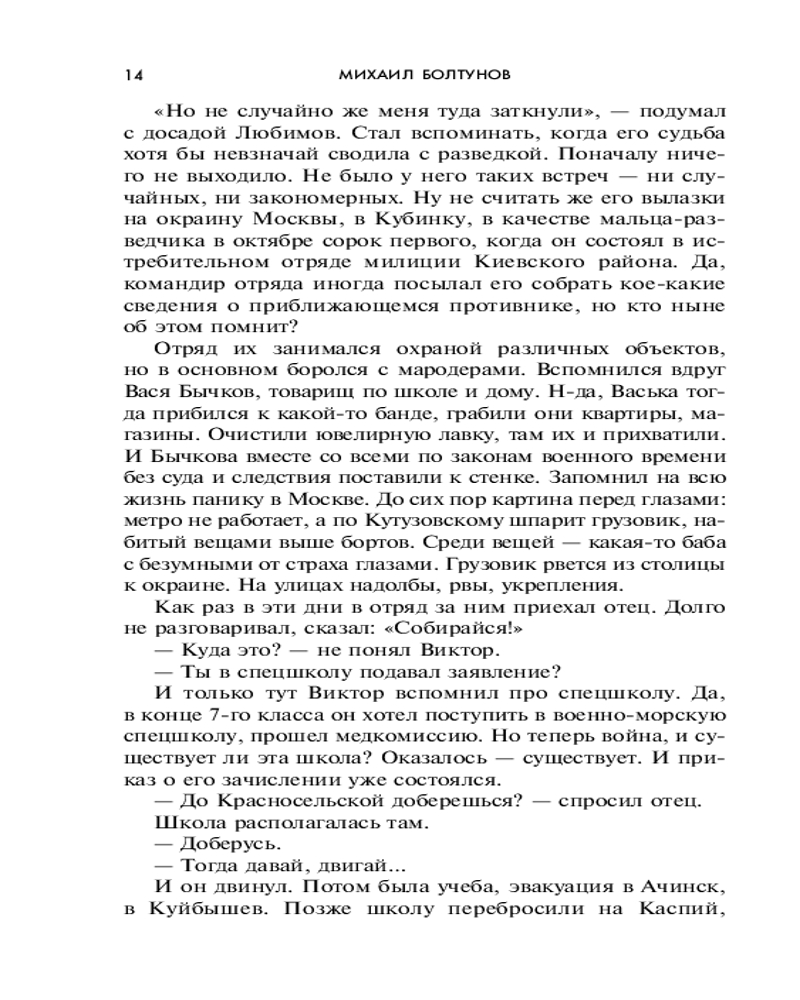 | Болтунов Михаил Ефимович "военный писатель, автор ряда книг по истории разведывательно-диверсионной службы". Родился в 1952 году на Смоленщине. После окончания средней школы работал слесарем, сотрудником районной газеты, служил солдатом. Окончил факультет военной журналистики. Затем - редакции армейских газет и журналов. Член Союза российских писателей. |