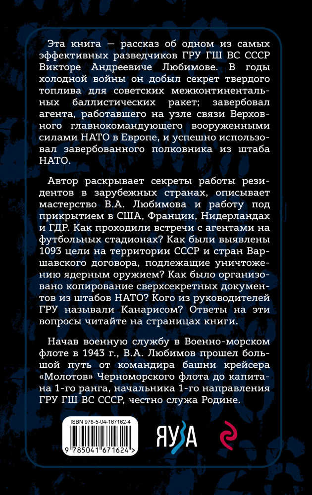 💳 Оплатить за товар можно при получении 🇰🇿 Есть бесплатная доставка по Казахстану от 1 дня 🎁 Копите бонусы с каждой покупки Серия: Военная разведка В 1970 г. на экраны Советского Союза вышел двухсерийный художественный фильм «Судьба резидента» о вражеском разведчике в СССР, а в то же время за пределами СССР успешно действовал резидент ГРУ В.А. Любимов. Деятельность разведчиков всегда засекречена, но новая книга Михаила Болтунова приоткрывает завесу тайны и показывает работу резидента ГРУ. |