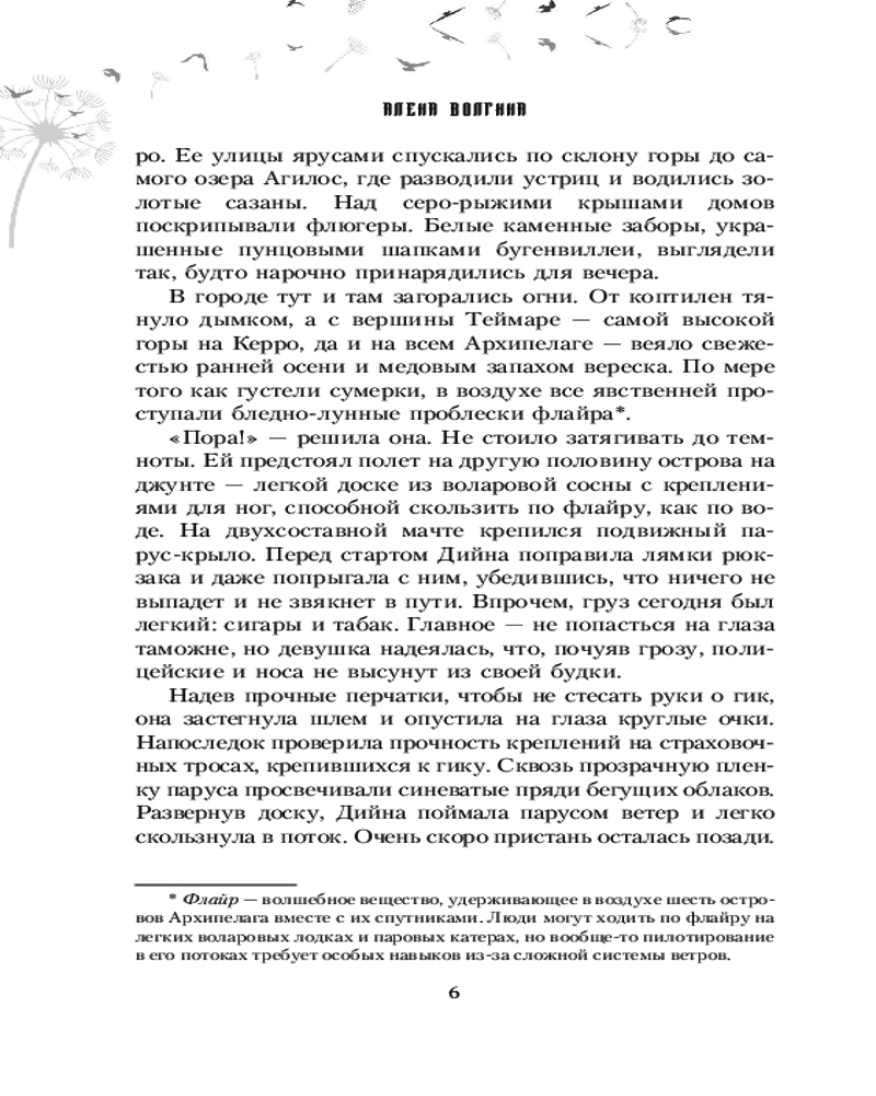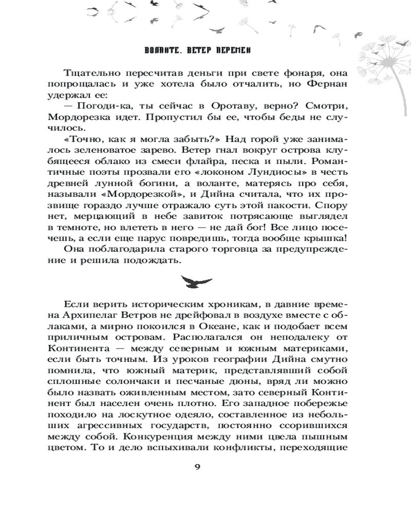 💳 Оплатить за товар можно при получении 🇰🇿 Есть бесплатная доставка по Казахстану от 1 дня 🎁 Копите бонусы с каждой покупки Летучий Архипелаг — это группа островов в небе, окруженных волшебными ветрами. Дийна Веласко когда-то была наследницей острова Ланферро, а теперь работает скромным курьером и жива лишь потому, что враги отца плохо ее искали. Летая между островами на парусной лодке, девушка развозит грузы, иногда незаконные, так как ее хозяин время от времени балуется контрабандой. Однажды ей приходится бросить дорогой груз, чтобы спасти людей. Спасаясь от гнева хозяина и заказчика, Дийна прячется в неприступном колледже Всех Ветров, но старые враги пытаются достать беглянку и там. Зато у нее появляются новые друзья, которые помогут раскрыть любые тайны, и кроме того, вместе им предстоит создать лучшую летную команду на всем Архипелаге! |