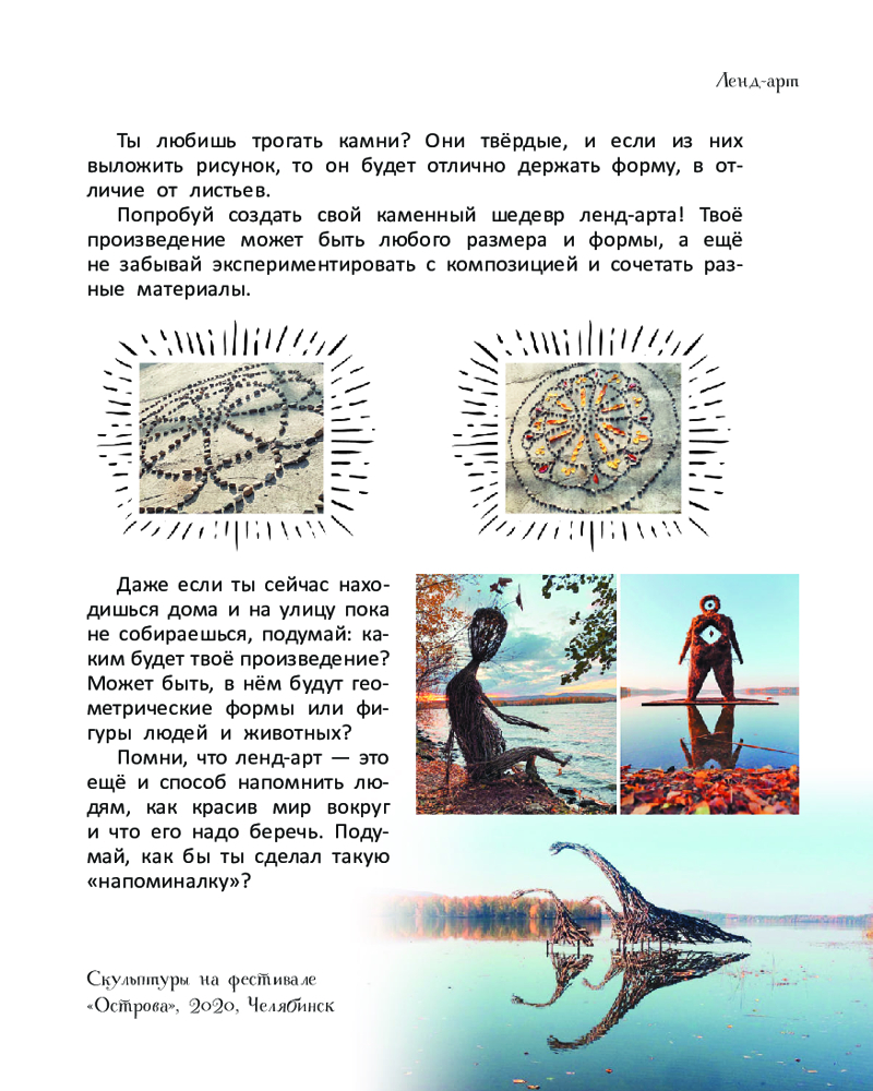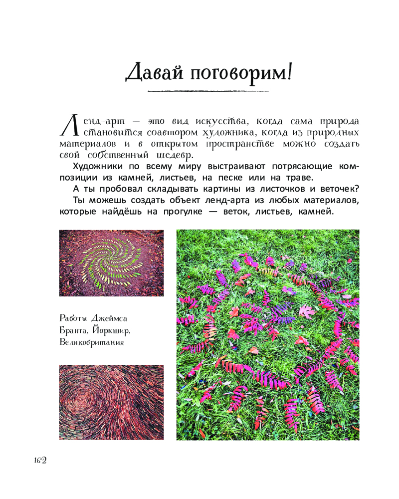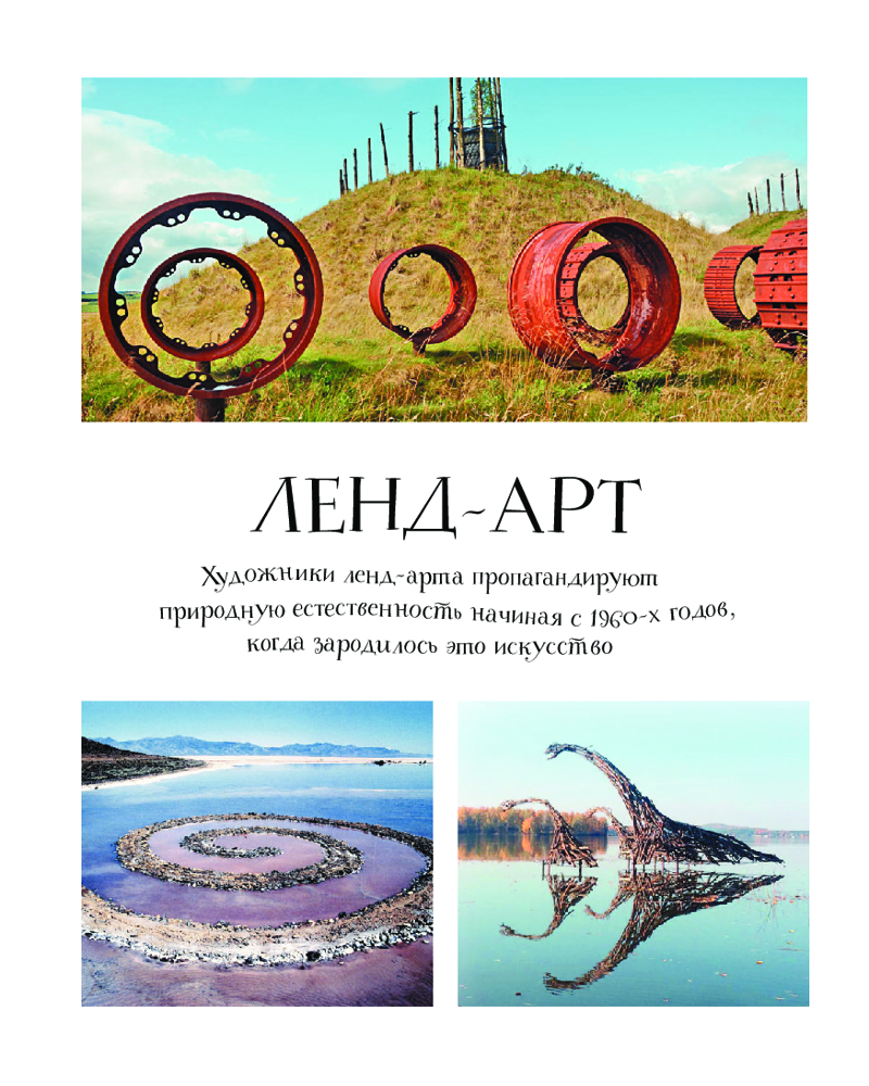 Искусство — повсюду! На бумаге и холсте, на улицах городов, посреди чистого поля и даже у каждого дома! Сегодня художники не ограничиваются только красками и мрамором, а ищут и создают прекрасное в окружающем нас мире с помощью самых разных материалов и инструментов.