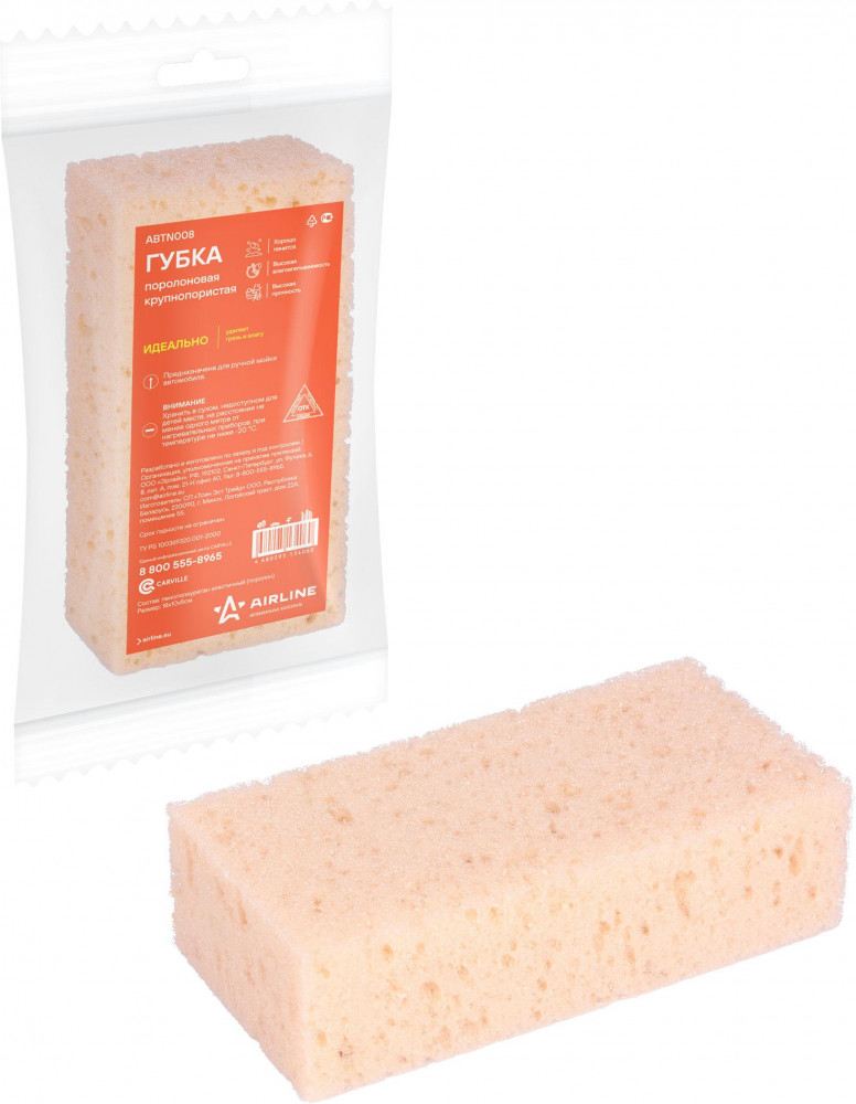 Губка поролоновая крупнопористая Airline предназначена для ручной мойки автомобиля. Обладает повышенной прочностью, высокой влаговпитываемостью, хорошо пенится.