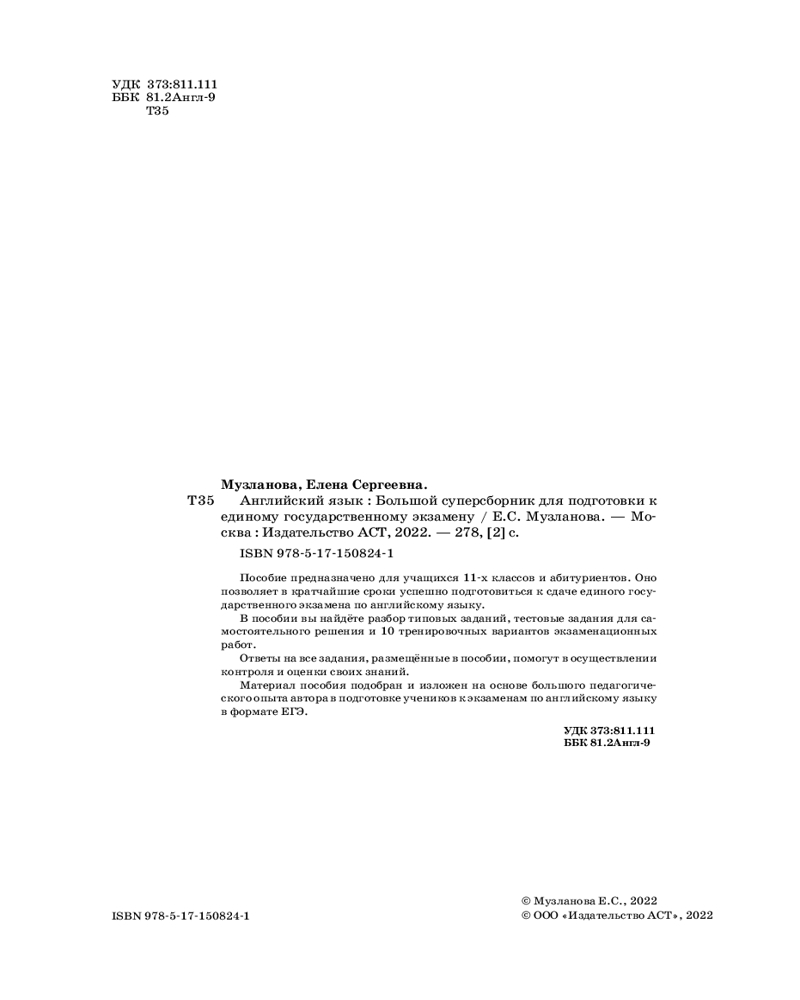 ЕГЭ. Английский язык. Большой суперсборник для подготовки к единому государственному экзаменуВ данный момент этот товар отсутствует в продаже. Возможно, у нас найдется аналогичный или похожий товар здесь. Серия: Большой суперсборник для подготовки к ЕГЭ Пособие предназначено для учащихся 11-х классов и абитуриентов. Оно позволяет в кратчайшие сроки успешно подготовиться к сдаче единого государственного экзамена по английскому языку. |