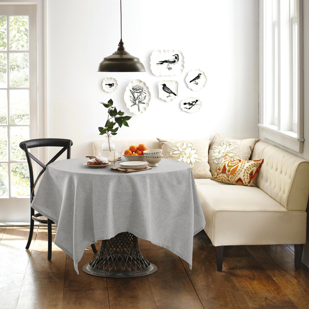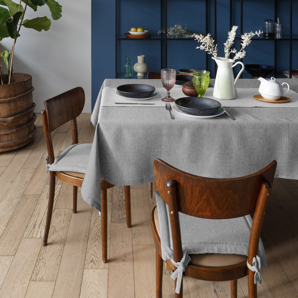 Цвет серый соответствует фото, он больше напоминает бежевый, структура хорошая, размер подошёл на кухонный столик среднего размера. Единственная приткнутся - это не аккуратный шов, торчат нитки.