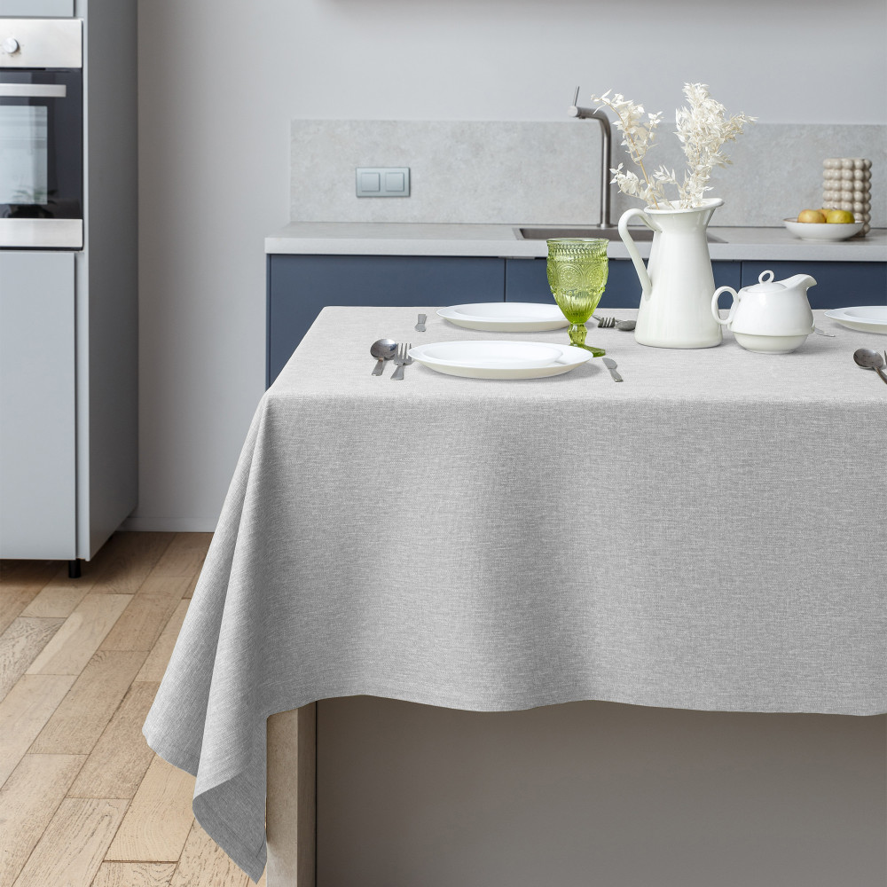 Скатерть замечательная! Заказывала зеленую и в полоску из этой серии. Жесткость ткани нравится держит форму и не катается.