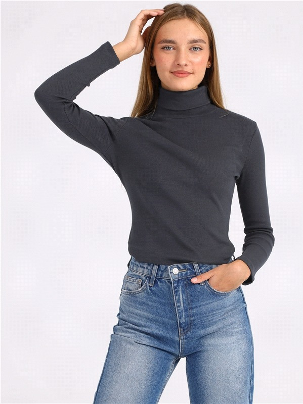 Цвет темно серый, мне нравится. Удобная водолазка. Размер 42 подошёл очень хорошо