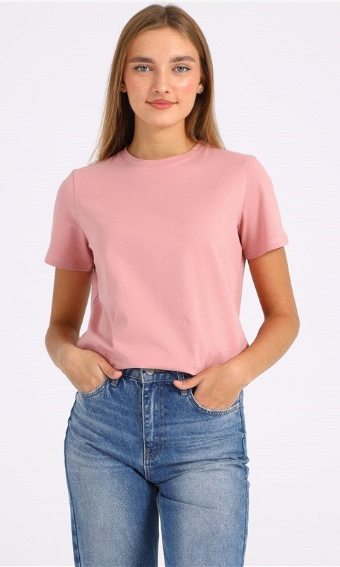 Футболка из плотного трикотажа. После стирки не села, не перекосило. Цвет нежный, бледнее чем на фото