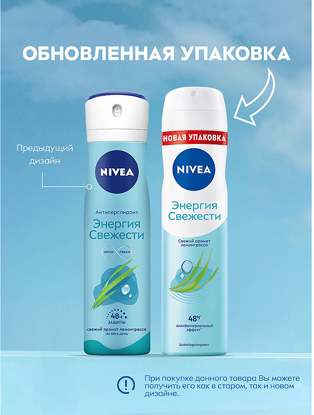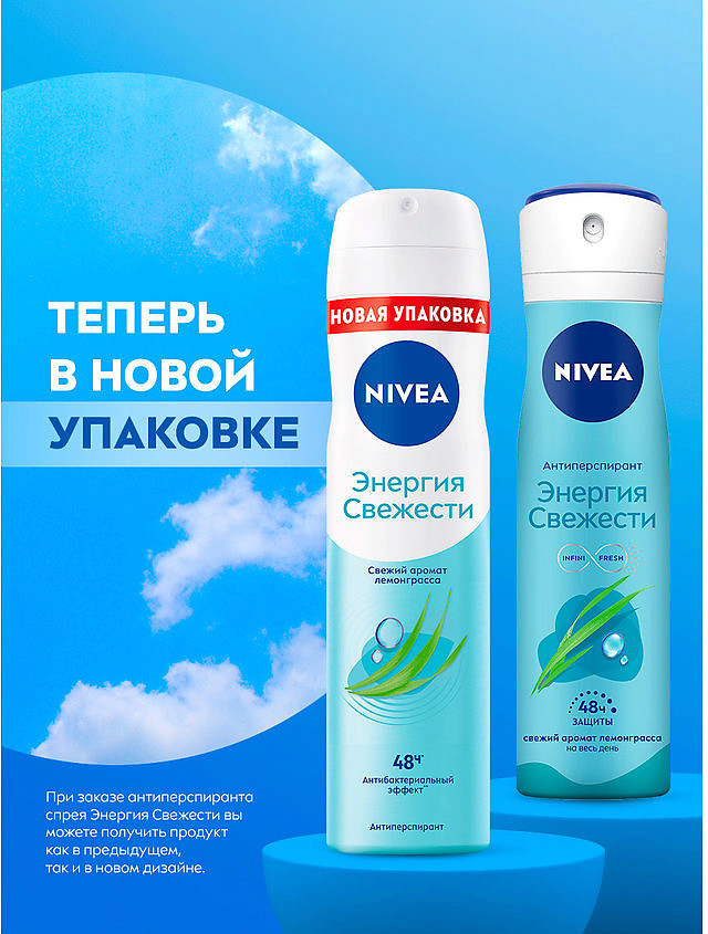 NIVEA Дезодорант-антиперспирант спрей с экстрактом лемонграсса «Энергия свежести»+63 приятный запах нежный аромат эффективная защита повседневное использование