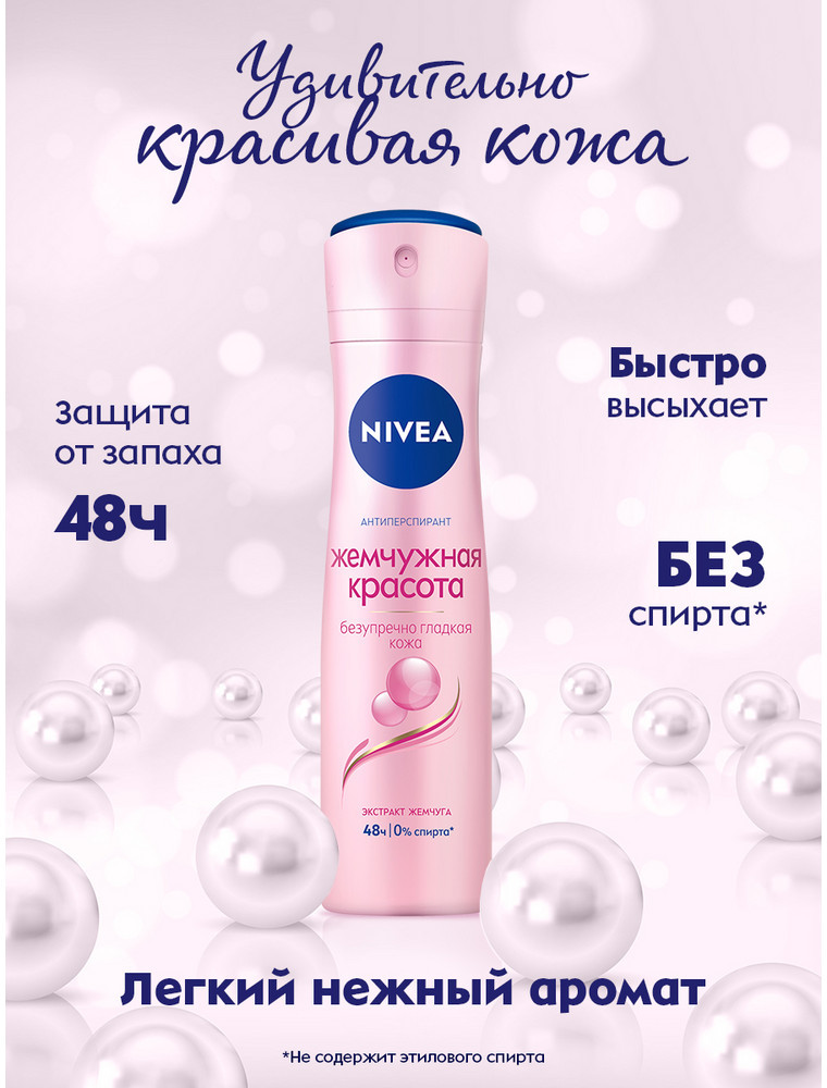 NIVEA Дезодорант-антиперспирант спрей «Жемчужная красота» с экстрактом жемчуга, 150 мл+63 приятный аромат эффективность повторная покупка