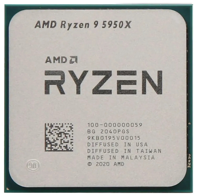 Процессор AMD Ryzen 9 5950X представляет собой высокопроизводительное устройство премиального сегмента. Предназначается для создания мощных систем для работы с трехмерными моделями, монтажа видеороликов, проведения прямых эфиров в высоком разрешении, а также запуска динамичных видеоигр. Устанавливается в сокет AM4 на материнских платах. Содержит 16 физических ядер, поддерживает технологии параллельной обработки до 32 потоков, а также автоматического увеличения частоты от минимальной 3.9 ГГц, до предельной 4.9 ГГц. Поддерживает работу с ОЗУ типа DDR 4 с максимальным объемом 128 ГБ и частотой 3700 МГц.