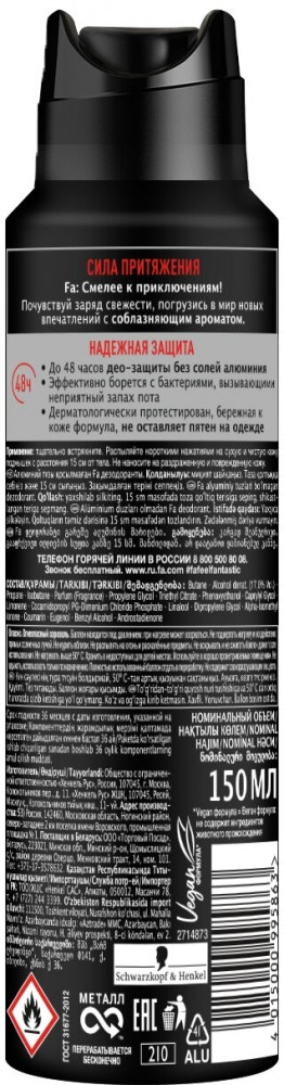 Fa Дезодорант-антиперспирант для мужчин «Сила притяжения»-20% +21