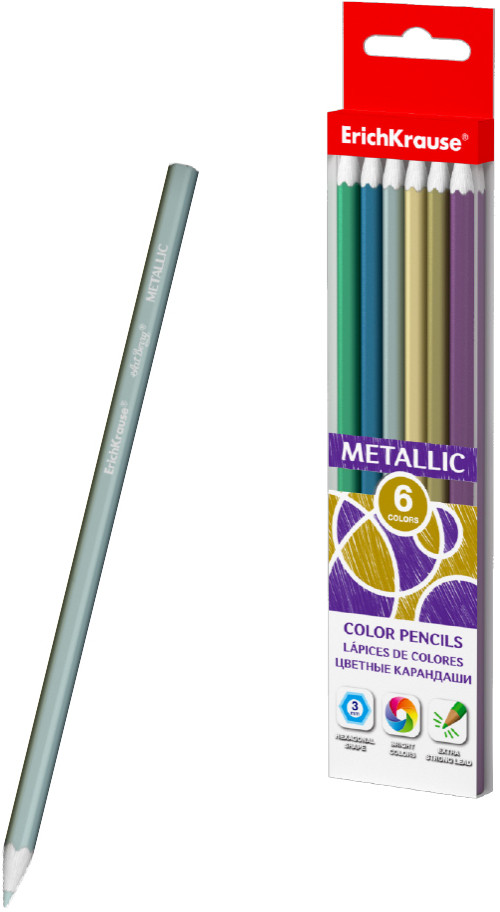 Erich Krause Набор карандашей цветных «Metallic»-30% +19 металлические оттенки золотой цвет бомбические цвета