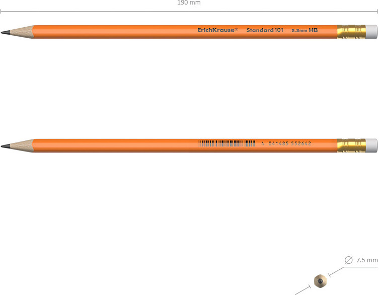 Erich Krause Карандаш чернографитный с ластиком «Standard 101»В данный момент этот товар отсутствует в продаже. Возможно, у нас найдется аналогичный или похожий товар здесь. Серия: Orange EK Эргономичный трехгранный чернографитный карандаш из биоразлагаемого пластика с ударопрочным грифелем, твёрдость HB. Благодаря специальной технологии изготовления карандаша методом экструзии, грифель надежно фиксируется к корпусу. Идеальная центровка грифеля гарантирует легкую заточку с экономным расходом карандаша. Грифель диаметром 2,2 мм не царапает бумагу и не крошится при рисовании. Ластик карандаша средней жесткости изготовлен из экологически чистого и гипоаллергенного материала термопластичной резины (TPR). Не содержит ПВХ. |