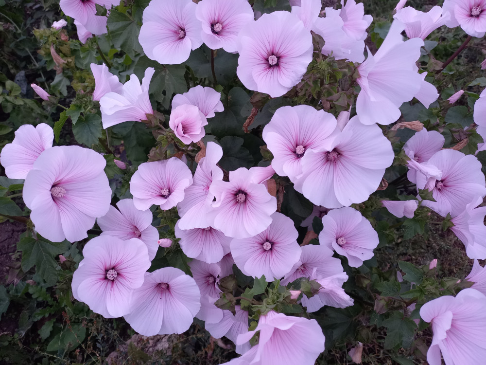 Сегодня 23 сентября, с утра был заморозок, но лаватере он нипочём, прекрасный сорт, низкорослый, пышный, долгоцветущий. Посадила в балон 3 росточка, вырос прекрасный куст, шаровидной формы.