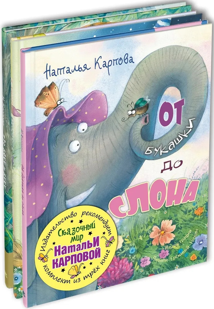 Сказочный мир Натальи Карповой. Комплект из 3 книгВ данный момент этот товар отсутствует в продаже. Возможно, у нас найдется аналогичный или похожий товар здесь. Стихи Натальи Карповой завоевали сердца многих маленьких читателей и их родителей. Для ценителей веселых рифм и ярких образов мы собрали специальный тематический набор - «Сказочный мир Натальи Карповой»! |