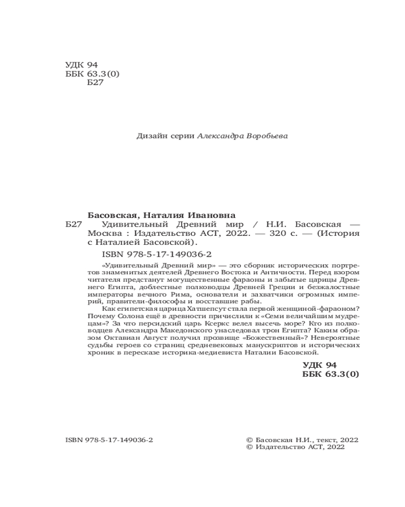 💳 Оплатить за товар можно при получении 🇰🇿 Есть бесплатная доставка по Казахстану от 1 дня 🎁 Копите бонусы с каждой покупки Серия: История с Наталией Басовской Наталия Басовская — историк-медиевист, доктор исторических наук профессор. Ведущий преподаватель и проректор РГГУ, стоявший у истоков зарождения университета. Директор учебно-научного Центра визуальной антропологии и эгоистории. Специалист по истории средневековой культуры Западной Европы. Автор более 150 исследовательских работ, посвященных историографии. |