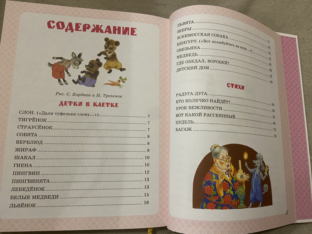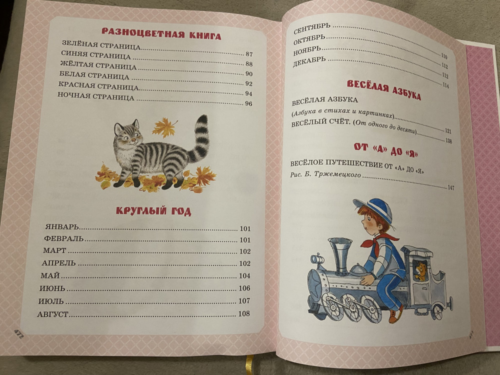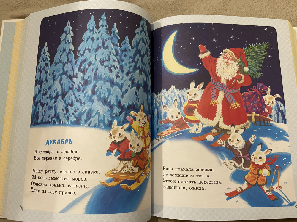 В магазине увидела эту книгу, но не купила, так как книга стоила очень дорого, почти вдвое дороже, чем на Флип.кз. Окунаюсь сама в детство: «В декабре, в декабре все деревья в серебре…», «Аист с нами прожил лето, а зимой гостил он где-то» и другие, с детства знакомые строки. Поскольку мне перед покупкой важно оглавление в книге, то я его здесь размещу, если позволят модераторы.