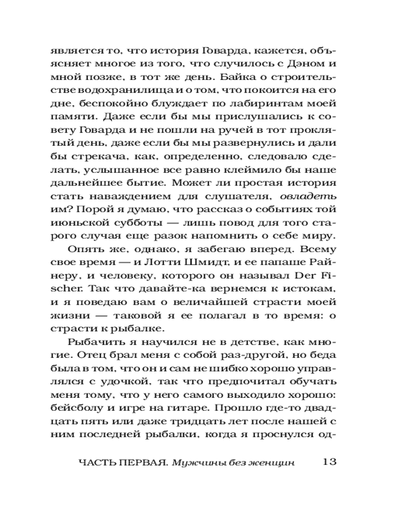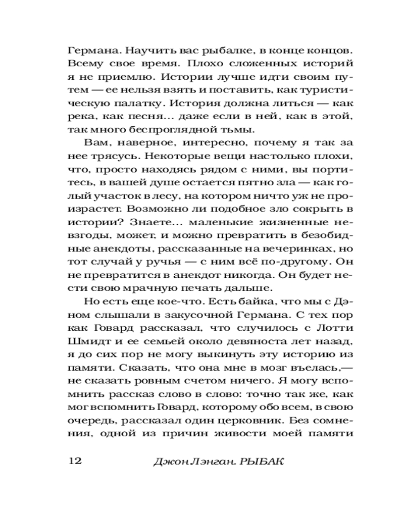 РыбакВ данный момент этот товар отсутствует в продаже. Возможно, у нас найдется аналогичный или похожий товар здесь. Серия: Хоррор-бестселлер Голландский ручей — прекрасное место для рыбалки, живописный лесной уголок вдали от бесконечной суеты современной цивилизации. С ним связаны причудливые легенды о таинственном Рыбаке и о чудовищах, которых он ловил. Когда сюда приезжают Эйб и Дэн, два вдовца, потерявшие все самое дорогое в жизни, эти слухи кажутся им лишь очередной байкой, но постепенно рассказ о страшных событиях, произошедших в городе поблизости около века назад, о Рыбаке, монстрах и мертвецах вовлекают героев в историю мрачнее любого омута. Друзья еще не знают, что местные воды гораздо глубже, чем кажутся, и ведут в пространства, неподвластные человеку; что древние тайны не умерли до сих пор; что ад всегда рядом, а тем, кто отчаялся, вскоре выпадет шанс встретиться со всем, что они потеряли. Вот только цена за эту встречу будет непомерной. |