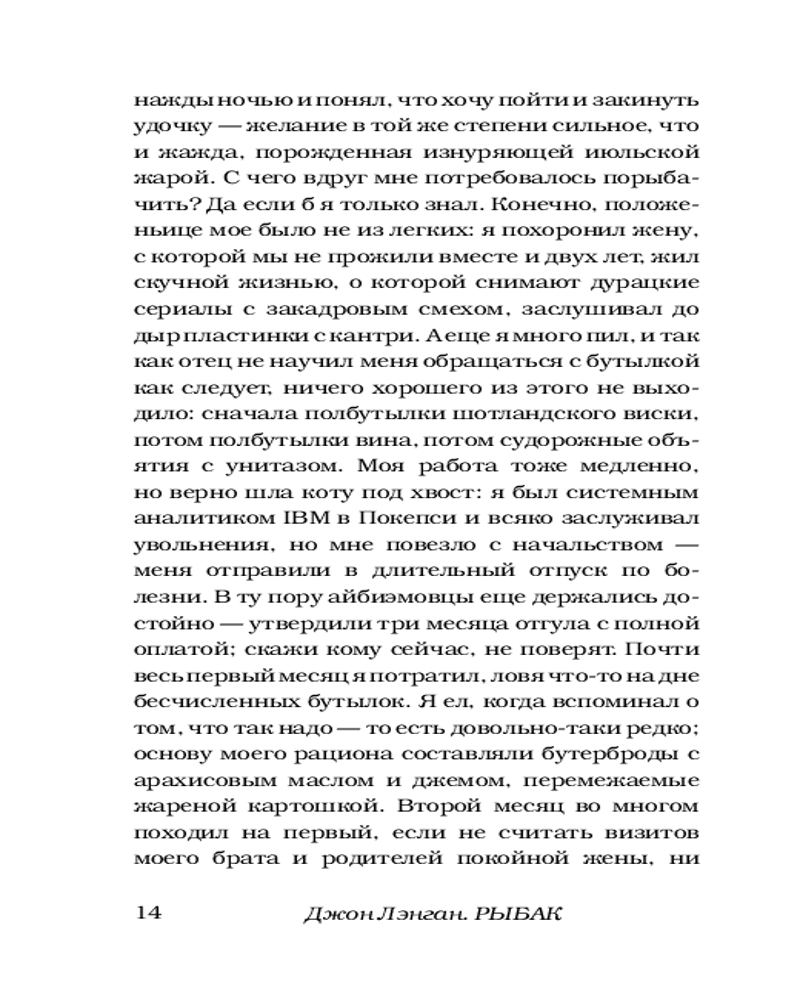 "Рыбак" (Д Лэнган) - в тонком картонном переплёте, не ламинированном. Страницы тонкие, шрифт бледноват и мелкий, разворот страниц для чтения хороший. Но, думаю, раз страницы проклеены, а не прошиты, книга долго служить не будет. Поэтому читать её надо очень аккуратно. Содержание книги интересное, чтение увлекает. По сути, книга в стиле Брэма Стокера. Содержание отличное, но жаль, что книга не в твёрдом переплёте.