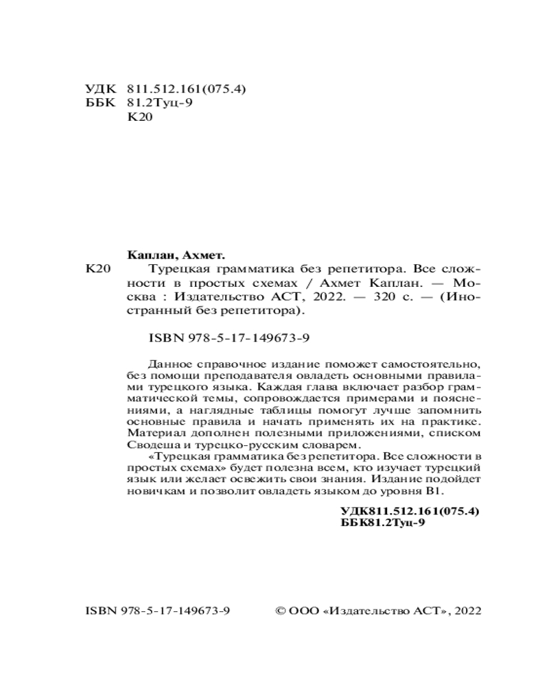 💳 Оплатить за товар можно при получении 🇰🇿 Есть бесплатная доставка по Казахстану от 1 дня 🎁 Копите бонусы с каждой покупки Серия: Иностранный без репетитора Данное справочное издание поможет самостоятельно, без помощи преподавателя овладеть основными правилами турецкого языка. Каждая глава включает разбор грамматической темы, сопровождается примерами и пояснениями, а наглядные таблицы помогут лучше запомнить основные правила и начать применять их на практике. Материал дополнен полезными приложениями, списком Сводеша и турецко-русским словарем. |