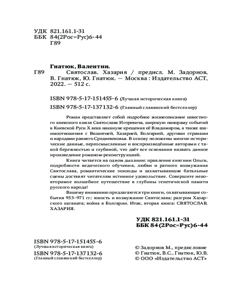 💳 Оплатить за товар можно при получении 🇰🇿 Есть бесплатная доставка по Казахстану от 1 дня 🎁 Копите бонусы с каждой покупки Серия: Лучшая историческая книга Роман «Святослав. Хазария» представляет собой подробное жизнеописание известного киевского князя Святослава Игоревича, широкую панораму событий в Киевской Руси X века накануне крещения её Владимиром, а также взаимоотношения с Византией, Хазарией, Болгарией, другими странами и народами раннего Cредневековья. |