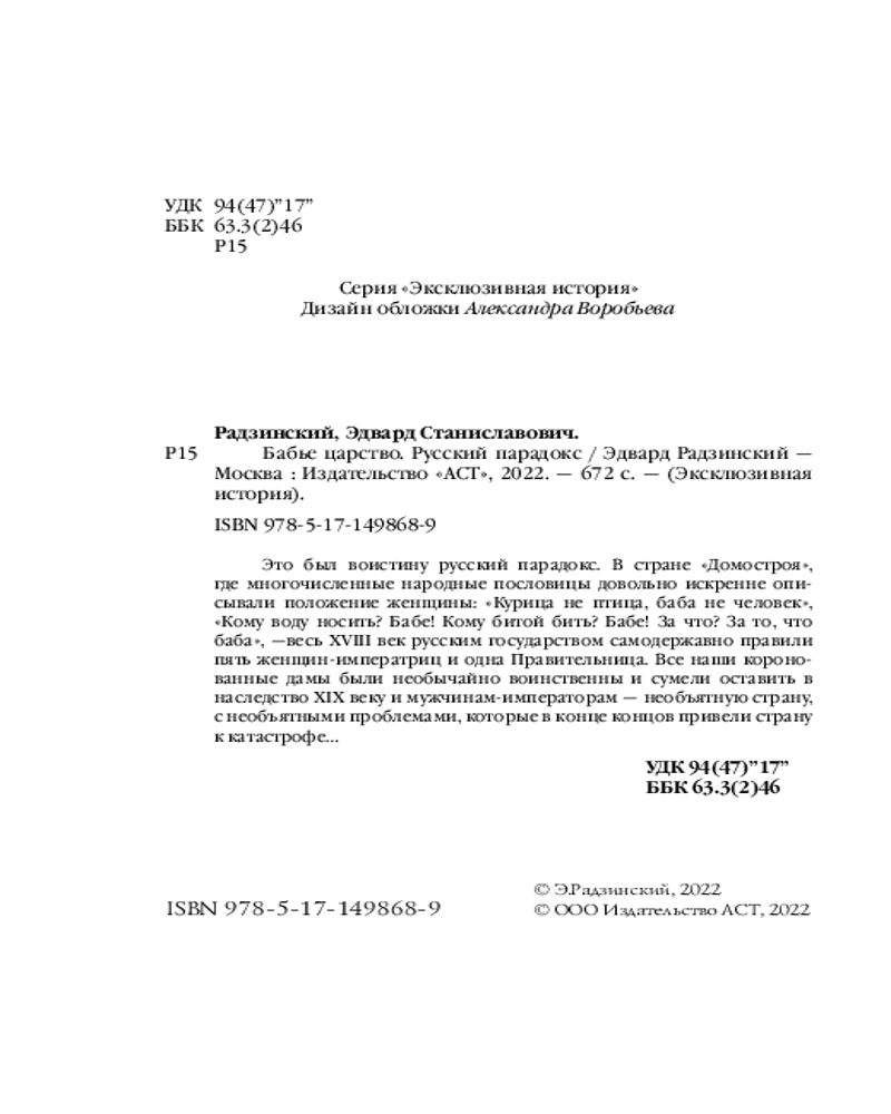Бабье царство. Русский парадоксЭдвард Станиславович Радзинский +40