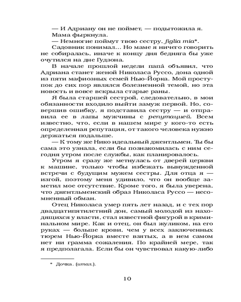 Избежав одного скандала, она едва ли может позволить себе быть втянутой в другой. Кроме того, даже если бы Николас и принадлежал ей, все знают, что не стоит влюбляться в мафиози...