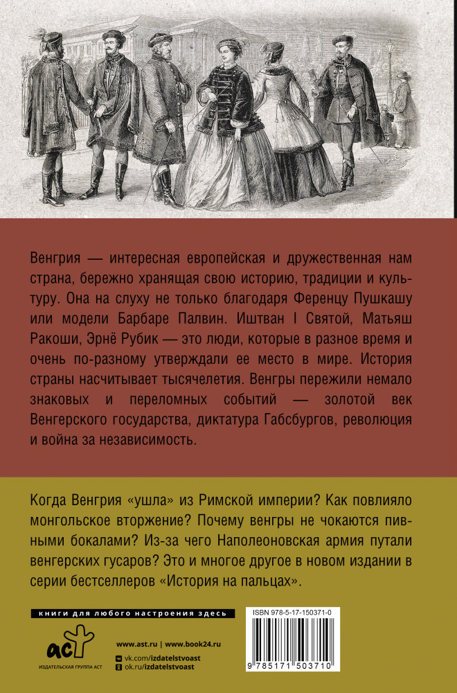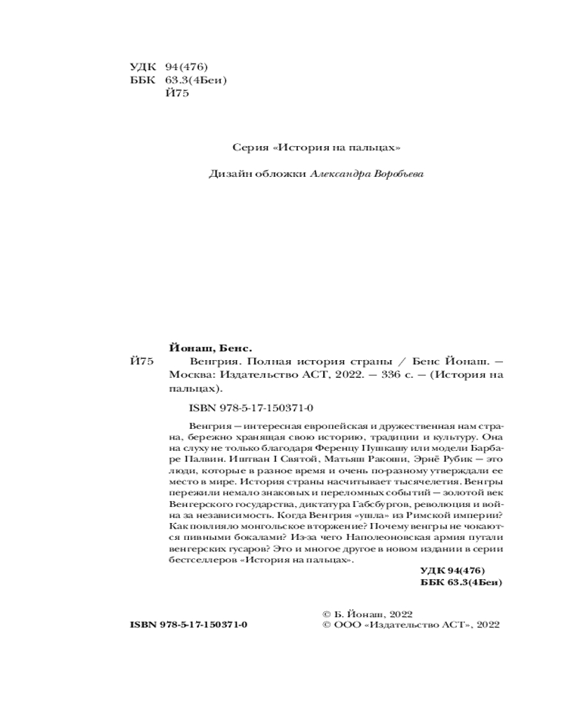 Венгрия. Полная история страныВ данный момент этот товар отсутствует в продаже. Возможно, у нас найдется аналогичный или похожий товар здесь. Серия: История на пальцах Венгрия — интересная европейская и дружественная нам страна, бережно хранящая свою историю, традиции и культуру. Автор книги «Венгрия. Полная история страны» описывает историю страны с древнейших времен до наших дней ведь эта уникальная страна на слуху не только благодаря Ференцу Пушкашу или модели Барбаре Палвин. Иштван I Святой, Матьяш Ракоши, Эрнё Рубик — это люди, которые в разное время и очень по-разному утверждали ее место в мире. Венгры пережили не мало знаковых и переломных событий — золотой век Венгерского государства, диктатура Гасбургов, революция и война за независимость. |