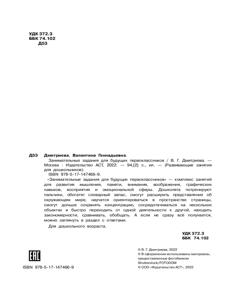 Занимательные задания для будущих первоклассниковВалентина Геннадьевна Дмитриева +81