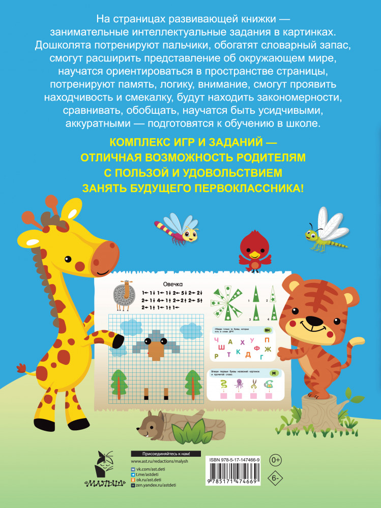 💳 Оплатить за товар можно при получении 🇰🇿 Есть бесплатная доставка по Казахстану от 1 дня 🎁 Копите бонусы с каждой покупки Серия: Развивающие занятия для дошкольников «Занимательные задания для будущих первоклассников» — комплекс занятий для развития мышления, памяти, внимания, воображения, графических навыков, восприятия и эмоциональной сферы. Дошколята потренируют пальчики, обогатят словарный запас, смогут расширить представление об окружающем мире, научатся ориентироваться в пространстве страницы, смогут дольше сохранять концентрацию, сосредотачиваться на нескольких объектах и быстро переходить от одной деятельности к другой, находить закономерности, сравнивать, обобщать. А если не сразу всё получается, можно заглянуть в раздел с ответами. |