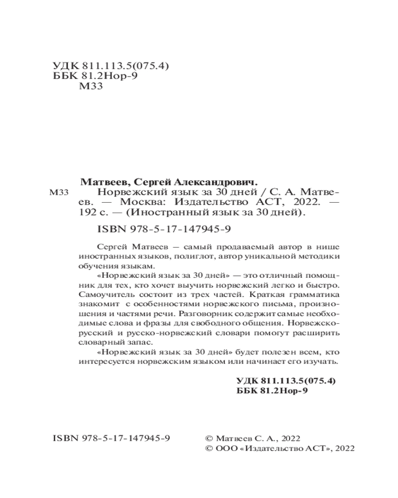 💳 Оплатить за товар можно при получении 🇰🇿 Есть бесплатная доставка по Казахстану от 1 дня 🎁 Копите бонусы с каждой покупки Серия: Иностранный язык за 30 дней Сергей Матвеев — самый продаваемый автор в нише иностранных языков, полиглот, автор уникальной методики обучения языкам. |