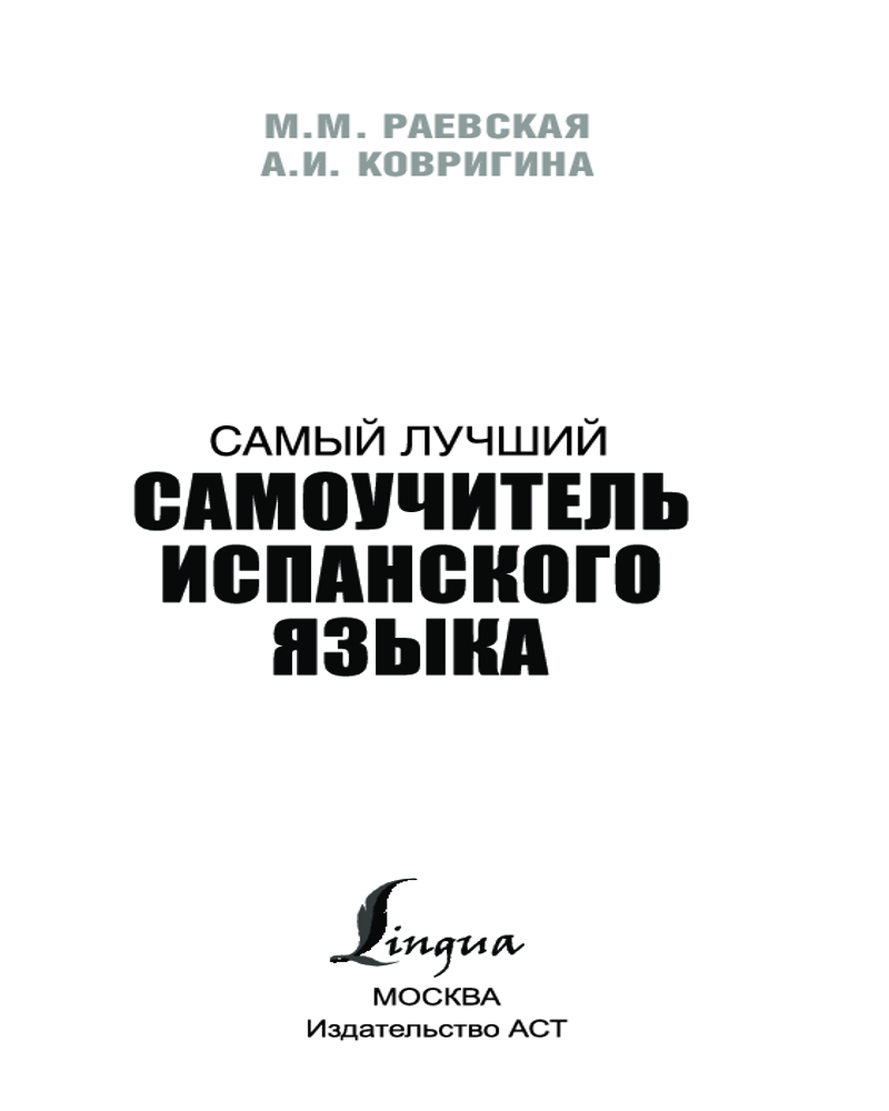 Серия: Самый лучший самоучитель Марина Михайловна Раевская — заведующая кафедрой испанского языка факультета иностранных языков и регионоведения МГУ имени М. В. Ломоносова, опытный преподаватель испанского языка. Анна Ивановна Ковригина — старший преподаватель кафедры испанского языка факультета иностранных языков и регионоведения МГУ имени М. В. Ломоносова. Благодаря авторской методике изучить испанский язык можно не только быстро, но и качественно.