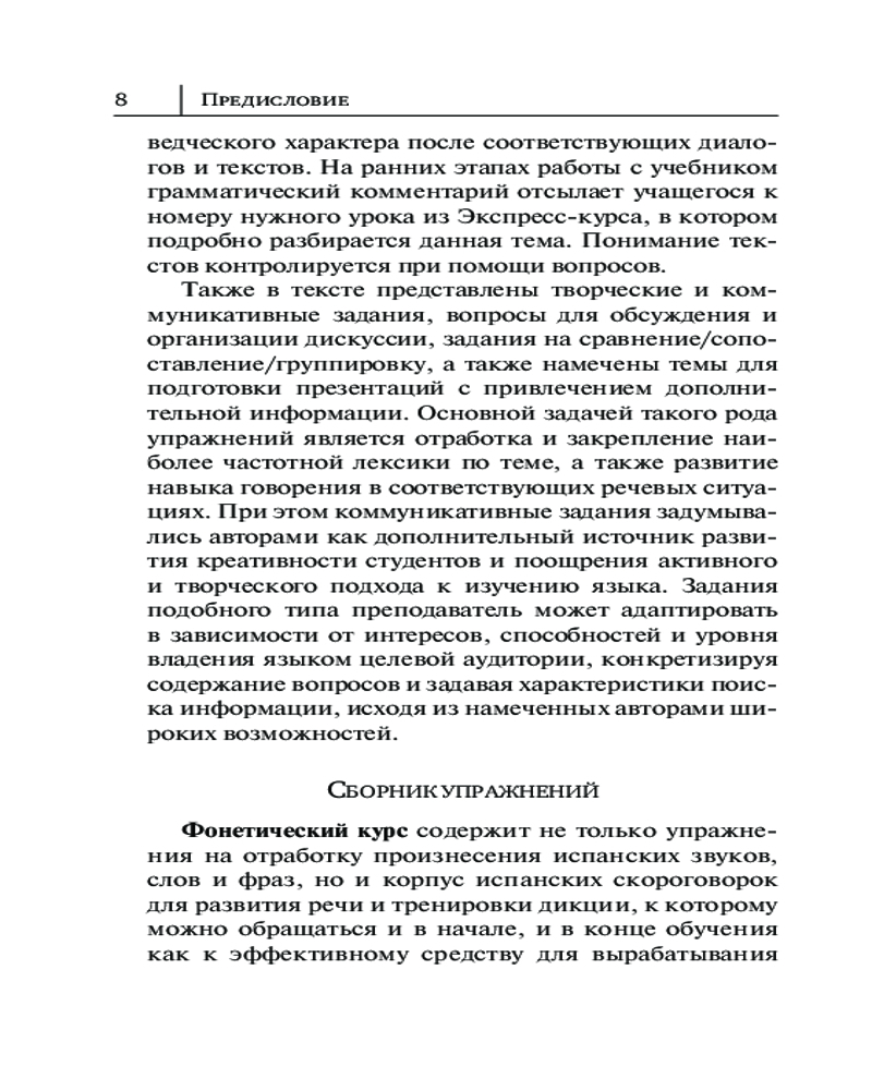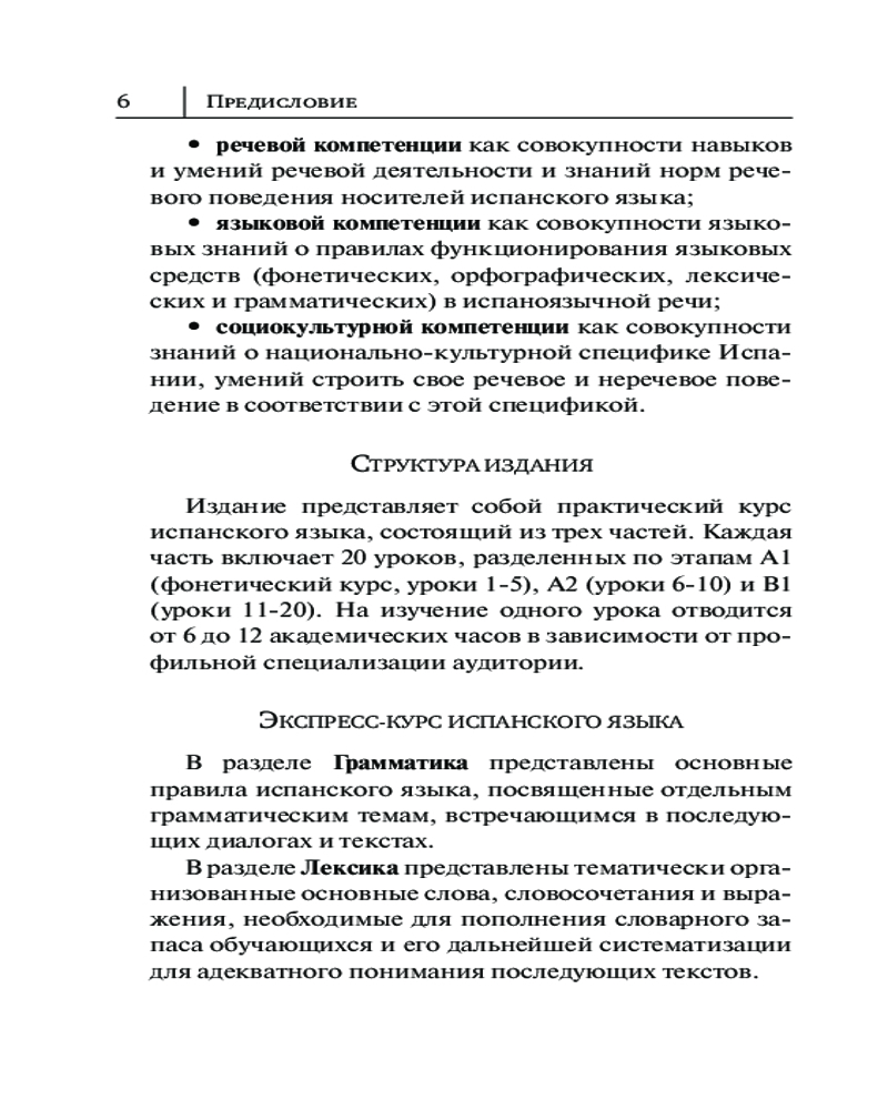 Экспресс-курс от профессионалов включает не только подробный разбор лексики, грамматики и фонетики изучаемого языка — здесь вы найдете творческие и коммуникативные задания, вопросы для группового обсуждения и обширную страноведческую рубрику. Интересные факты о стране, её городах, жителях, особенностях культуры и быта привнесут в языковые уроки живые впечатления. Упражнения разных форматов можно выполнять одному или в группе, заручившись поддержкой сокурсников и друзей. Книга развивает языковые навыки сразу в ТРЁХ компетенциях: языковой, речевой и социокультурной. Вы и сами не заметите, как начнете писать, говорить и... думать на испанском. Легко и быстро!