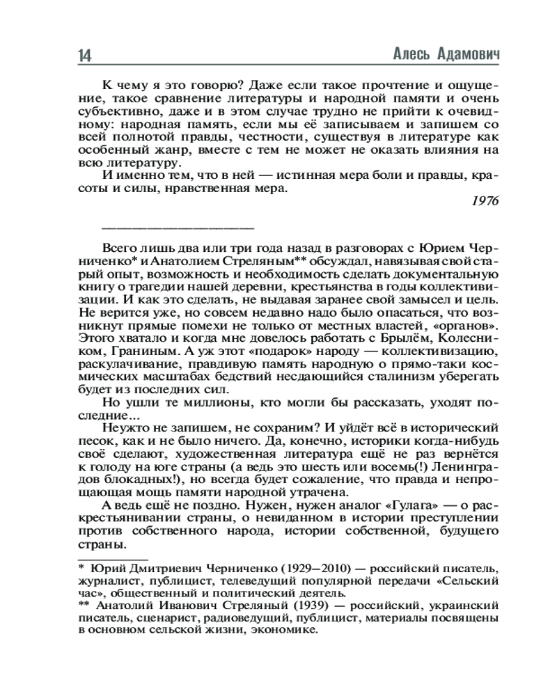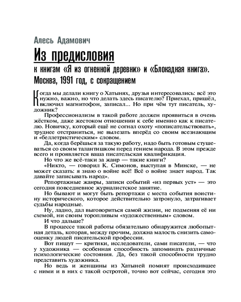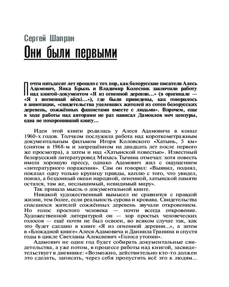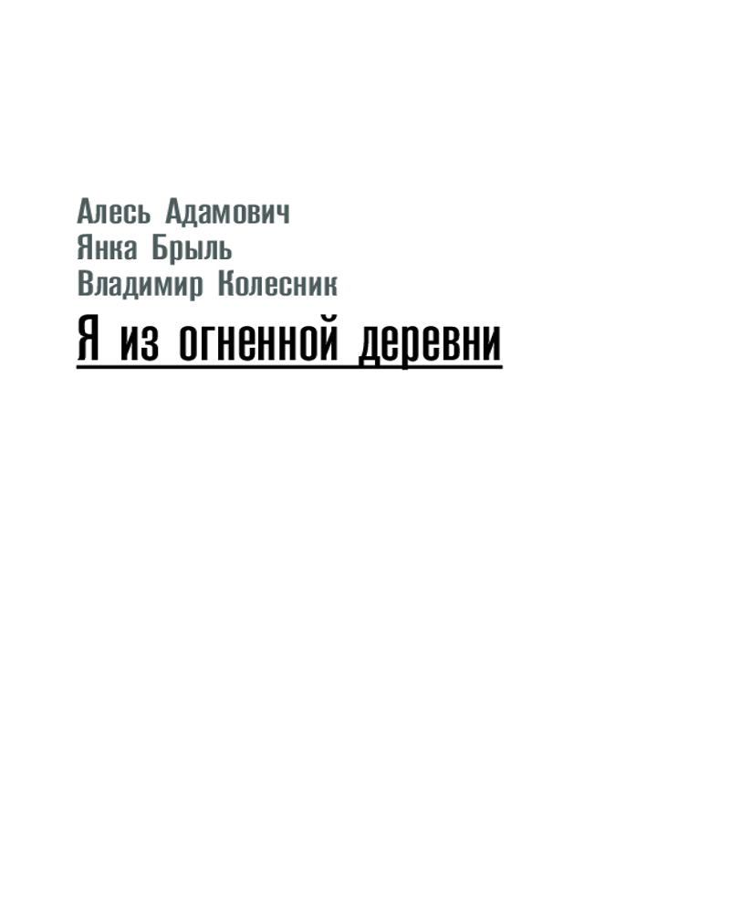 Серия: История в лицах и эпохах «Я из огненной деревни» — документальный сборник воспоминаний про уничтожение фашистами белорусских деревень и о партизанах во время Великой Отечественной войны, собранный и составленный белорусскими писателями Алесем Адамовичем, Владимиром Колесником и Янкой Брылем.