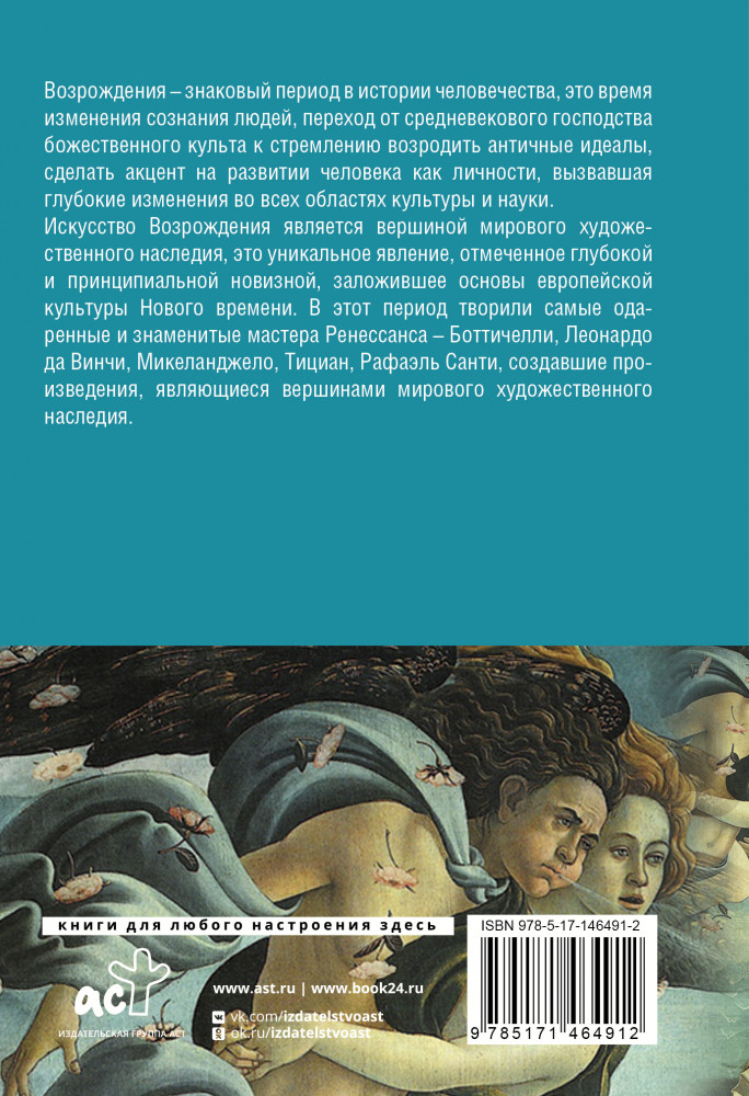Серия: Золотая коллекция живописи на ладони Возрождение — одна из самых ярких и изменивших мировоззрение людей эпох в мировой культуре и феноменальное явление в истории человечества. Это было время нового осмысления природы и человека и грандиозных перемен в истории европейских народов. Переворот, произведенный в эпоху Возрождения в области духовной культуры, имел огромное историческое значение.