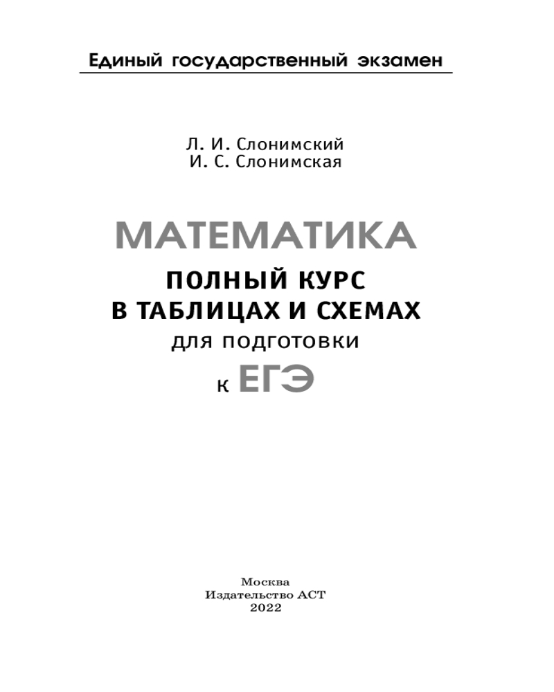 ЕГЭ. Математика. Полный курс в таблицах и схемах для подготовки к ЕГЭИрина Семеновна Слонимская, Лев Иосифович Слонимский +54