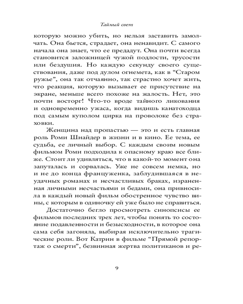 💳 Оплатить за товар можно при получении 🇰🇿 Есть бесплатная доставка по Казахстану от 1 дня 🎁 Копите бонусы с каждой покупки Серия: На последнем дыхании «Я долго смотрю на нее. Я могла бы сказать, что веду с ней воображаемые разговоры, но это не так. Говорю я одна. С ума сойти, какая ты красавица, с ума сойти, как я злюсь, что тебя больше нет, с ума сойти!.. Я кричу на нее, чтобы сильнее выразить свою любовь. Я бросаю ее, чтобы всегда быть рядом. Разоблачаю миф, чтобы сделать ее человечнее. Очеловечиваю, чтобы воскресить». |