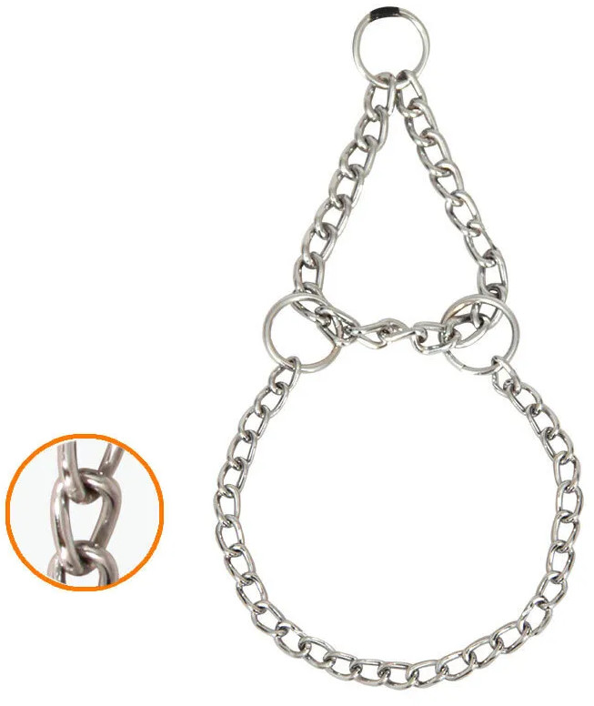 Функциональный однорядный ошейник-удавка из металла — это незаменимый аксессуар для выгула и дрессировки. Ошейник моментально затягивается при натяжении поводка, за счет чего эффективен при дрессировке с целью усиления воздействия на рывках. Аксессуар не перетирает шерсть, так как изготовлен из металла высокого качества, защищен от коррозии, не боится влаги и дождя и легко моется от грязи и пыли.