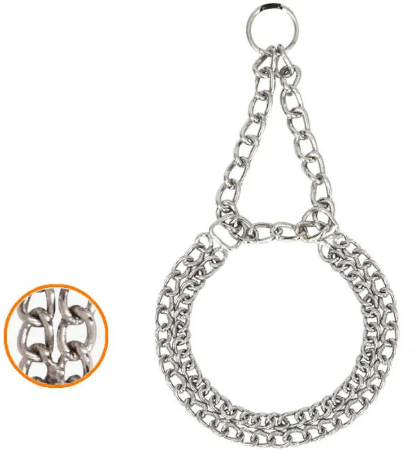 Функциональный двурядный ошейник-удавка из металла — это незаменимый аксессуар для выгула и дрессировки. Ошейник моментально затягивается при натяжении поводка, за счет чего эффективен при дрессировке с целью усиления воздействия на рывках. Аксессуар не перетирает шерсть, так как изготовлен из металла высокого качества, защищен от коррозии, не боится влаги и дождя и легко моется от грязи и пыли.