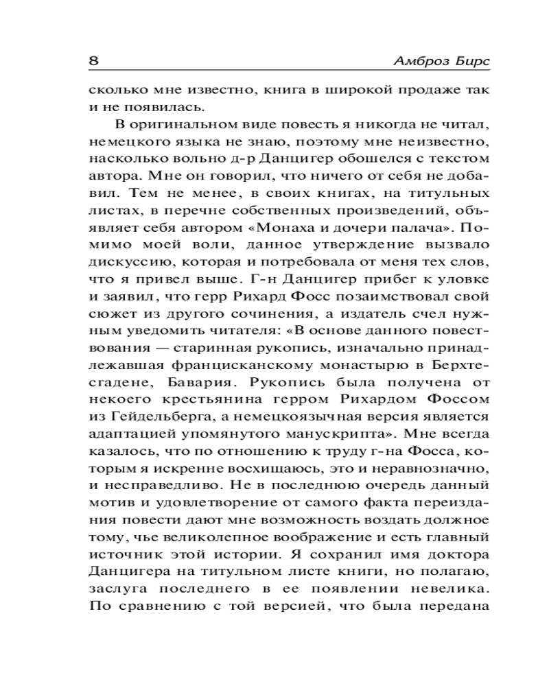 💳 Оплатить за товар можно при получении 🇰🇿 Есть бесплатная доставка по Казахстану от 1 дня 🎁 Копите бонусы с каждой покупки Серия: Зарубежная классика Одно из главных произведений творческого наследия Бирса — повесть «Монах и дочь палача» — тонкая и яркая история, написанная с почти средневековой стилистической простотой и естественностью, затрагивает вечные темы — противостояния веры и неверия, любви духовной и плотской, греха и искупления, преступления и наказания. |