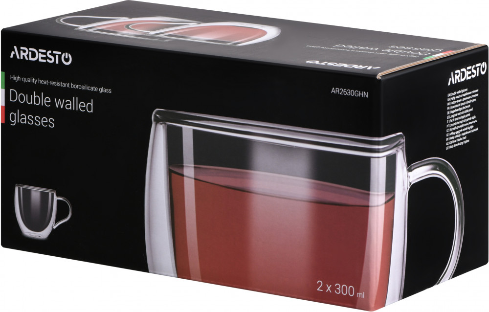Ardesto Набор чашекВ данный момент этот товар отсутствует в продаже. Возможно, у нас найдется аналогичный или похожий товар здесь. Набор чашек с двойными стенками. В набор входят две чашки объемом по 300 мл. Чашки изготовлены из термостойкого боросиликатного стекла. |