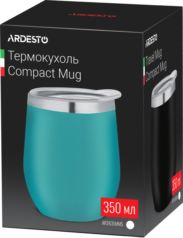 Термокружка из нержавеющей стали (18/10) высотой 11,4 см и имеет объем 350 мл. Способна сохранять температуру горячего напитка в течение трех часов, а холодного — в течение девяти часов. Не содержит бисфенола А (BPA). Не рекомендуется мыть в посудомоечной машине.