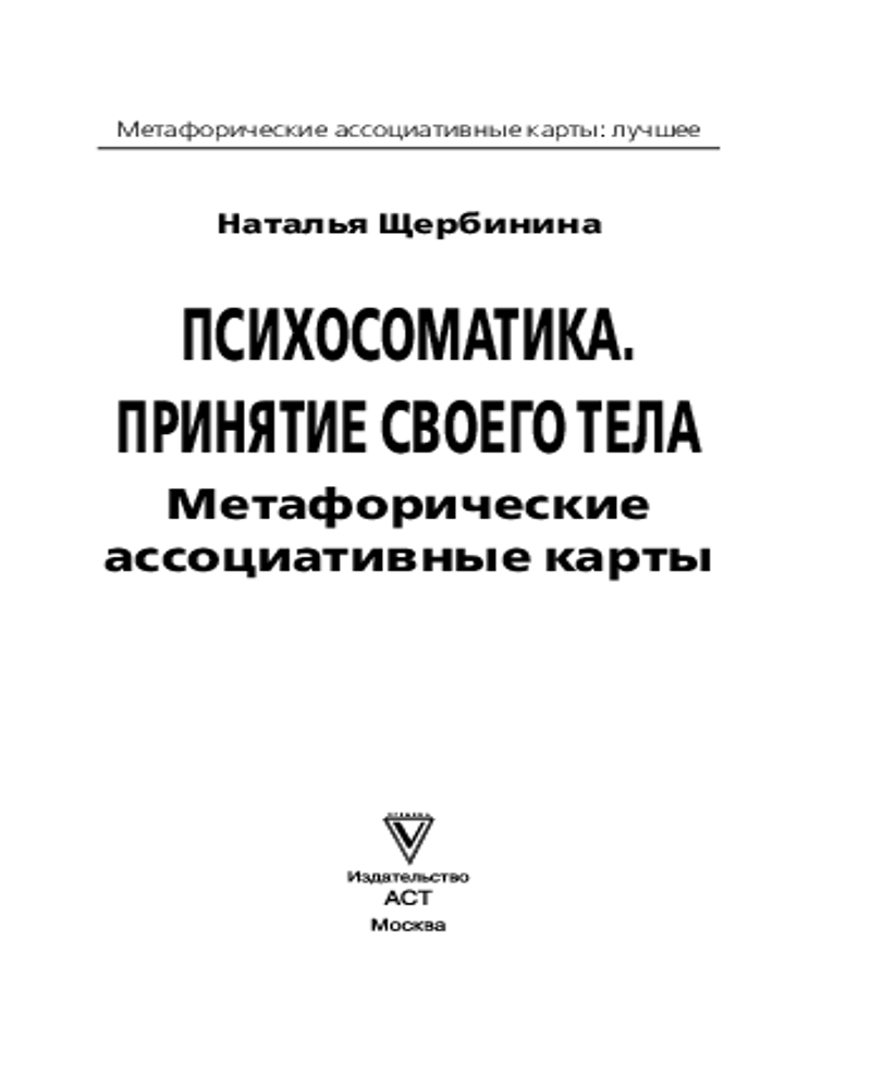 Серия: Метафорические ассоциативные карты: лучшее Наталья Щербинина — психолог, специалист по психосоматике, эксперт в вопросах пищевого поведения, популярный блогер (@nataly.otvet) и создатель трансформационного онлайн-курса «Дело не в еде» (dnve.natalyotvet.ru), автор книги «Психосоматика лишнего веса». И просто женщина, которая смогла избавиться от лишнего веса, опираясь на последние научные достижения в области физиологии и психологии, и нашла свой «рецепт» идеального тела.