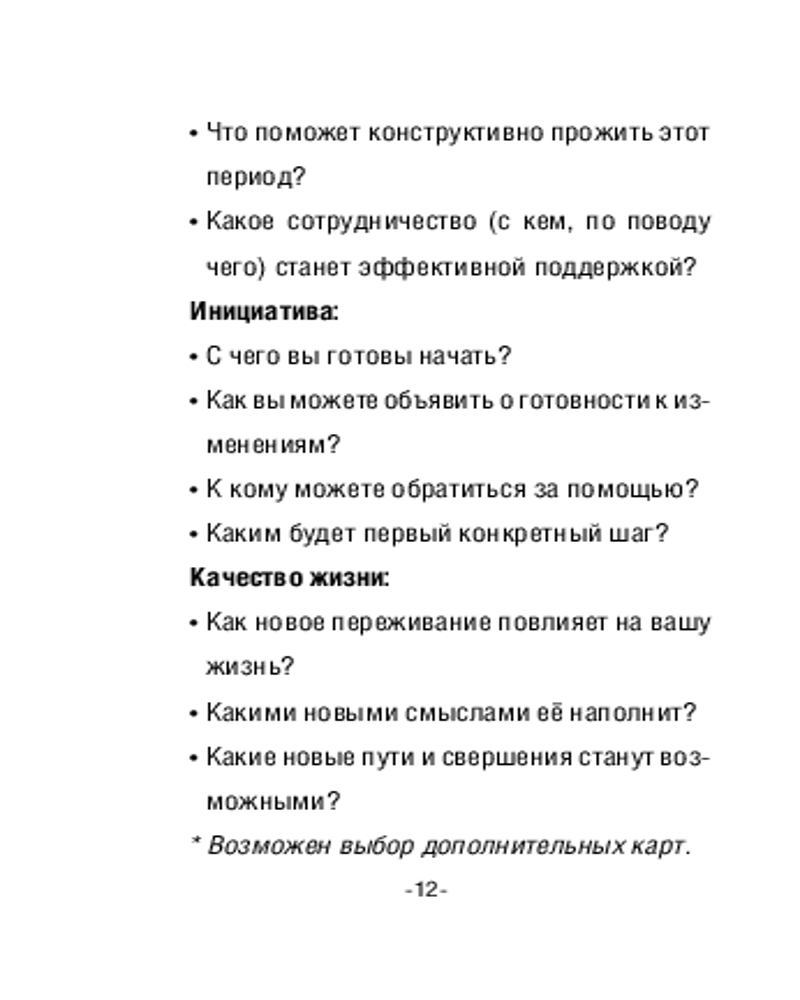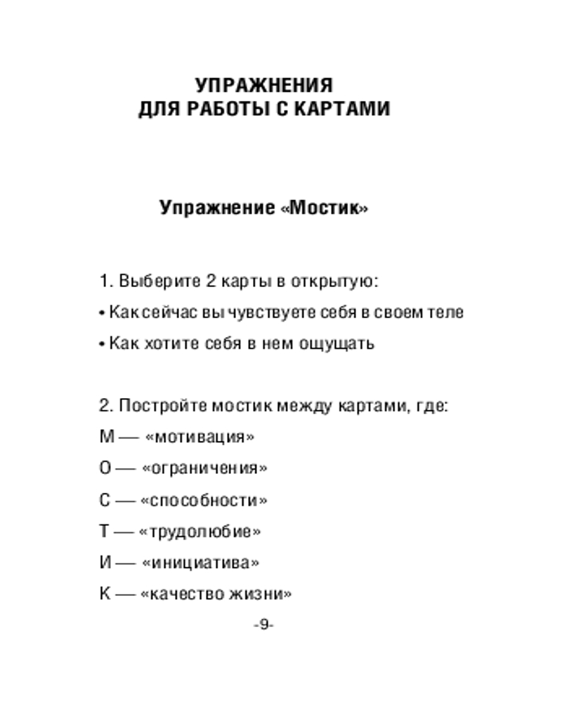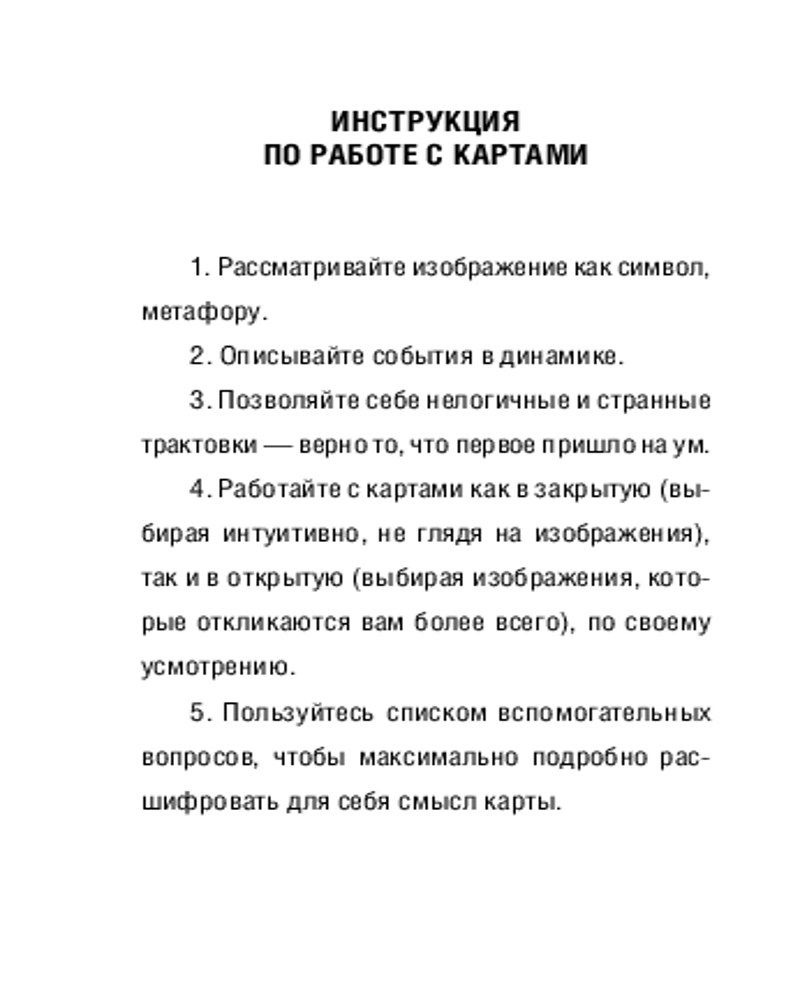 • брошюра с методическими рекомендациями по работе с картами (специальные упражнения, списки вспомогательных вопросов и авторские послания для каждой карты).
