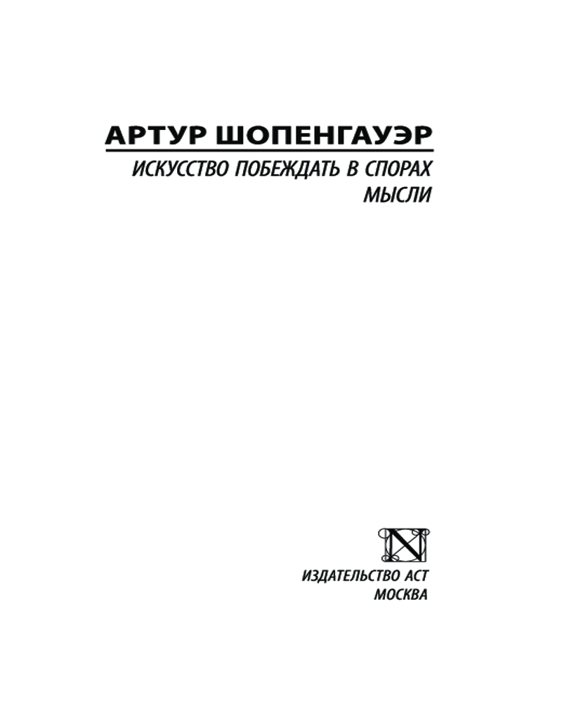 | Искусство побеждать в спорах. Мысли Артур Шопенгауэр