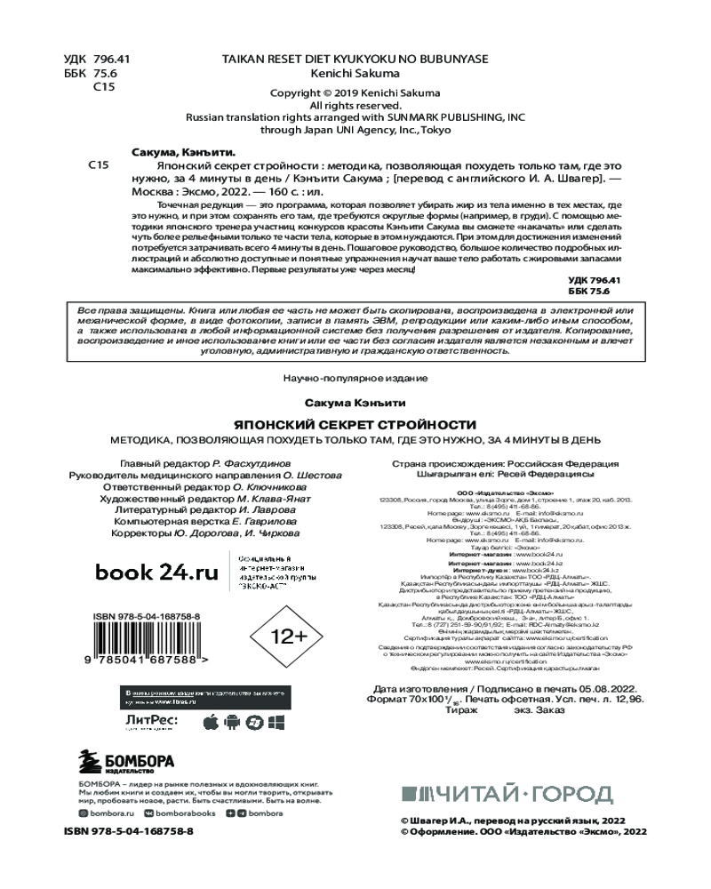Японский секрет стройности. Методика, позволяющая похудеть только там, где это нужно, за 4 минуты в день-20% +165