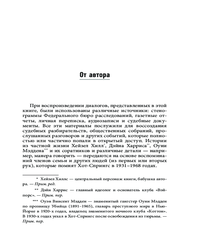 Хот-Спрингс, с одной стороны, был краем целебных вод, архитектуры в стиле ар-деко и первого национального парка Америки, с другой же — местом скачек и почти дюжины нелегальных казино и борделей. Гангстеры, игроки и мошенники: они стекались сюда, что-бы нажить себе состояние и спрятаться от суровой руки закона. Дэвид Хилл раскрывает все карты города — от темного прошлого расовой сегрегации до организованной преступности; от головокружительного подъема воротил игорного бизнеса до их контроля над вбросом бюллетеней на выборах. Романная проза, наполненная звуками и образами американских развлечений — джазовыми оркестрами и игровыми автоматами, умелыми аукционистами и наряженными комиками — это захватывающий взгляд на ушедшую эпоху американского порока.