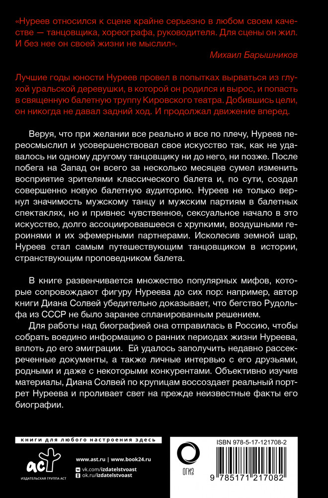 В книге развенчивается множество популярных мифов, которые сопровождают фигуру Нуреева до сих пор: например, автор книги Диана Солвей убедительно доказывает, что бегство Рудольфа из СССР не было заранее спланированным решением. Для работы над биографией она отправилась в Россию, чтобы собрать воедино информацию о ранних периодах жизни Нуреева, вплоть до его эмиграции. Ей удалось заполучить недавно рассекреченные документы, а также личные интервью с его друзьями, родными и даже с некоторыми конкурентами. Объективно изучив материалы, Диана Солвей по крупицам воссоздает реальный портрет