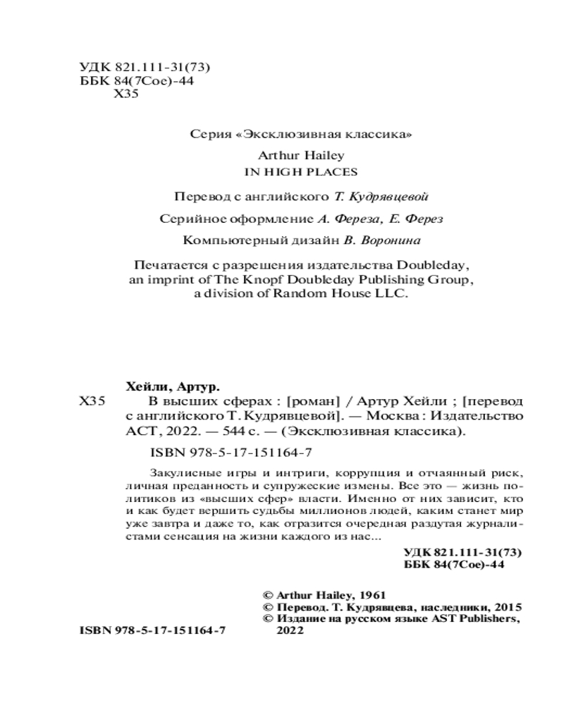 книга пришла в хорошем состоянии, без дефектов. вполне интересный роман, наполненный интригами, заговорами и уловками в правительстве. герои хитро и умело строят козни друг против друга ради личных выгод и удовлетворения своих амбиций, при этом игнорируя важные жизненные ценности, такие как верность, уважение и любовь.