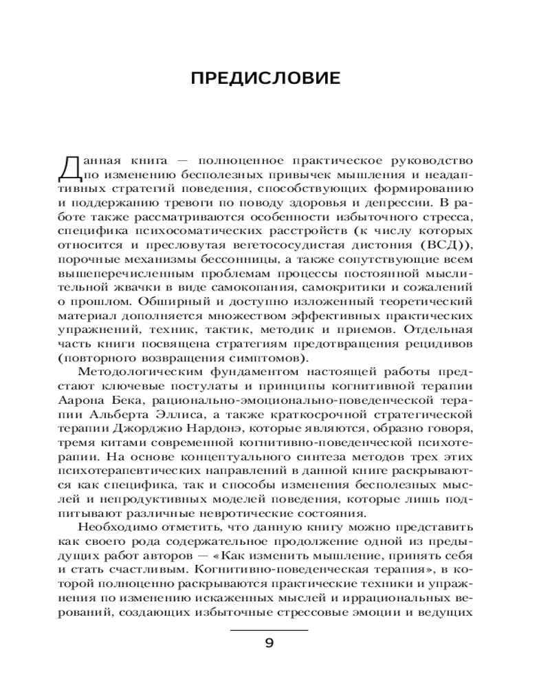 Идеальное средство достижения этой мечты — практическое руководство по изменению бесполезных привычек мышления и поведения, провоцирующих и поддерживающих тревоги, депрессии, переживания, стрессы.