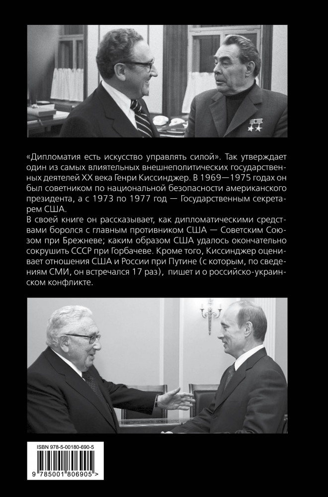 💳 Оплатить за товар можно при получении 🇰🇿 Есть бесплатная доставка по Казахстану 🎁 Копите бонусы с каждой покупки Серия: Великие вспоминают «Дипломатия есть искусство управлять силой». Так утверждает один из самых влиятельных внешнеполитических государственных деятелей ХХ века Генри Киссинджер. В 1969-1975 годах он был советником по национальной безопасности американского президента, а с 1973 по 1977 год — Государственным секретарем США. |